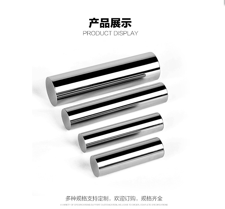 本產品表面經特殊研磨及硬鉻電鍍技術外理,再經鏡面拋光而成,具有耐磨擦、抗腐蝕性特性,可用作各種氣缸、油缸、包裝機械、木工機械、紡織機械、印染機械、壓鑄機、注塑機及其它機械的導桿、頂桿。